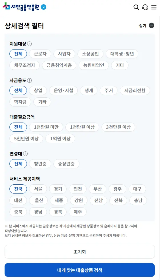 각 대출 상품별 세부 조건은 상이할 수 있으므로, 신청 전 반드시 해당 기관에 문의하여 확인하시기 바랍니다.